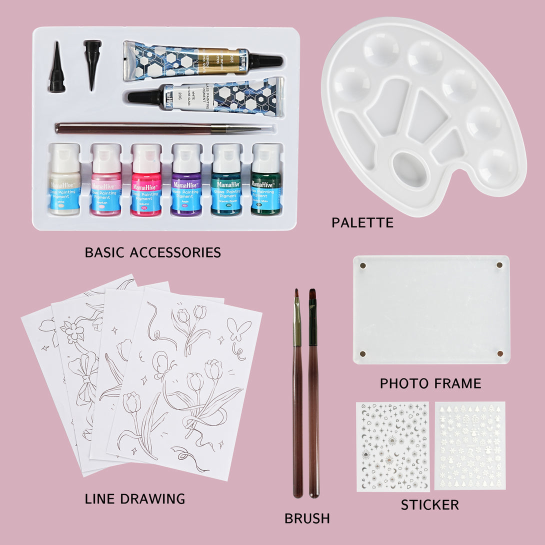 Bring the joy of spring into your home with MamaHive’s Tulip 6-Color Glass Painting Kit. Carefully curated shades let you create beautiful tulip designs on glass surfaces.